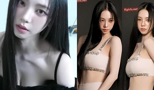 쥬얼리가 박혀 있는 비키니 같은 옷입고 화보 찍는 아이돌 아이들(슈화,미기,우기)