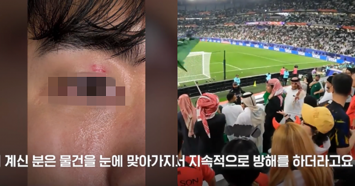 [아시안컵] 야유·조롱 비매너.. 사우디 관중사우디 관중이 '던진 물건'에 맞은 한국 관중