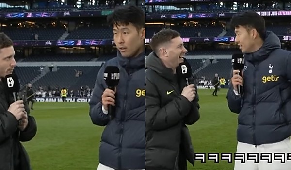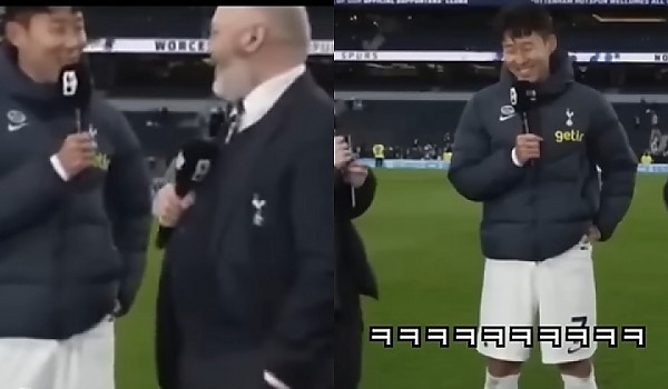 인터뷰 중 예상치못한 한국팬의 고함 소리에 입 찢어지게 웃는 쏘니 (영상)