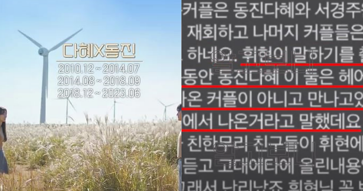 휘현이 말하기를 촬영하는동안 동진다혜 이 둘은 헤어지고 나온 커플이 아니라고 함..ㄷㄷㄷ