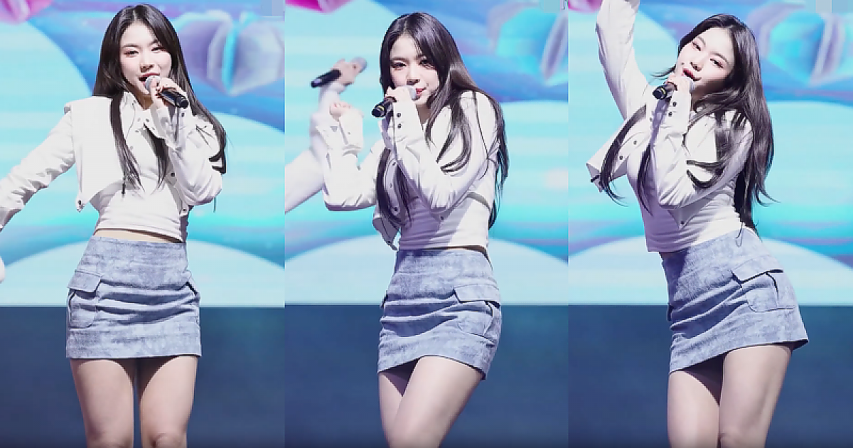 '흰티와 하늘색 치마' 의상으로 아름다움 드러내는 스테이씨 '아이사'