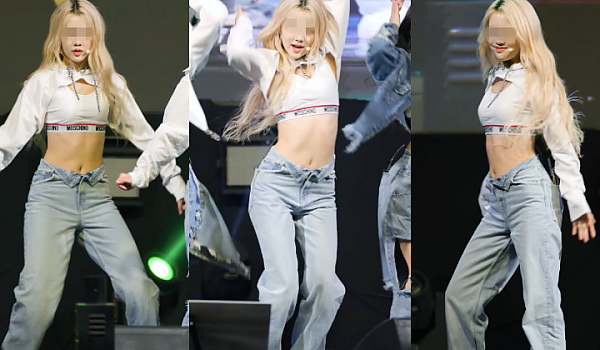 '스포츠 브라'와 하이웨스트 청바지 의상으로 '날씬한 몸매' 드러내는 아이돌 (영상)