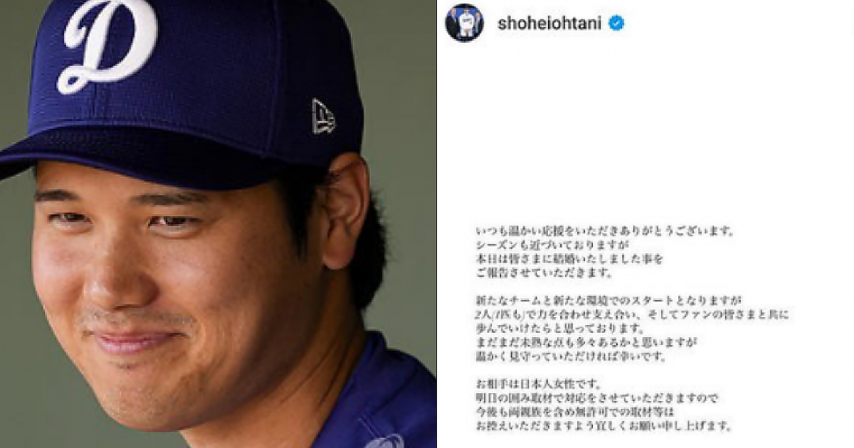 일본 출신의 MLB 스타인 오타니 쇼헤이가 SNS를 통해 갑작스럽게 결혼을 발표했다.