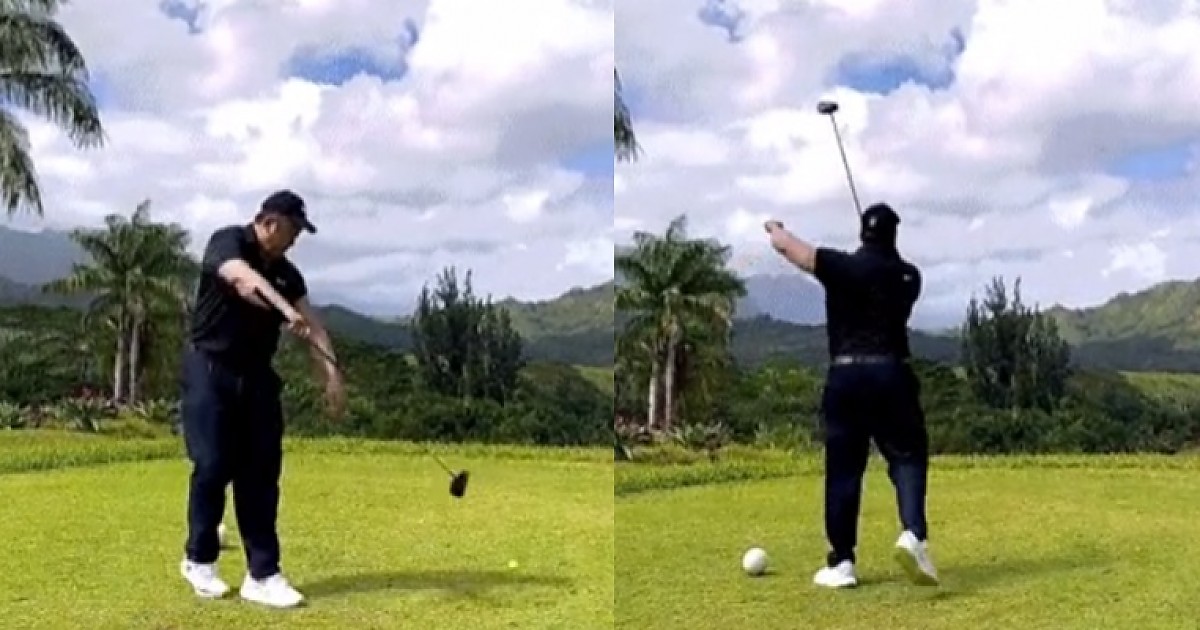 게임마냥 한 손으로 드라이버 쳐버리는 마동석 ...