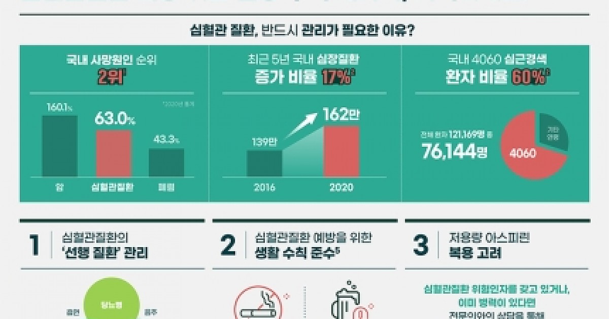 위험인자를 보유하고 있거나 병력이 있는 40대 이상은 심혈관 질환이 발병하지 않도록 미리 예방하고 관리하는 것이 중요한 이유다.