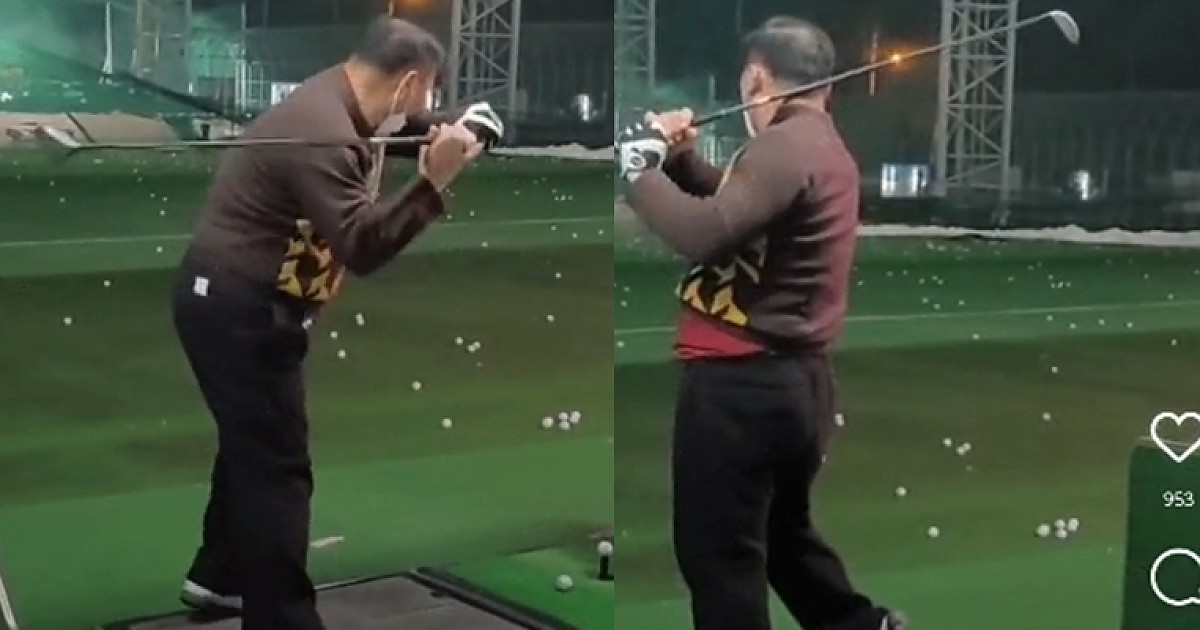 정말 놀라자빠질만한 어느 할아버지의 골프 스윙 자세.gif