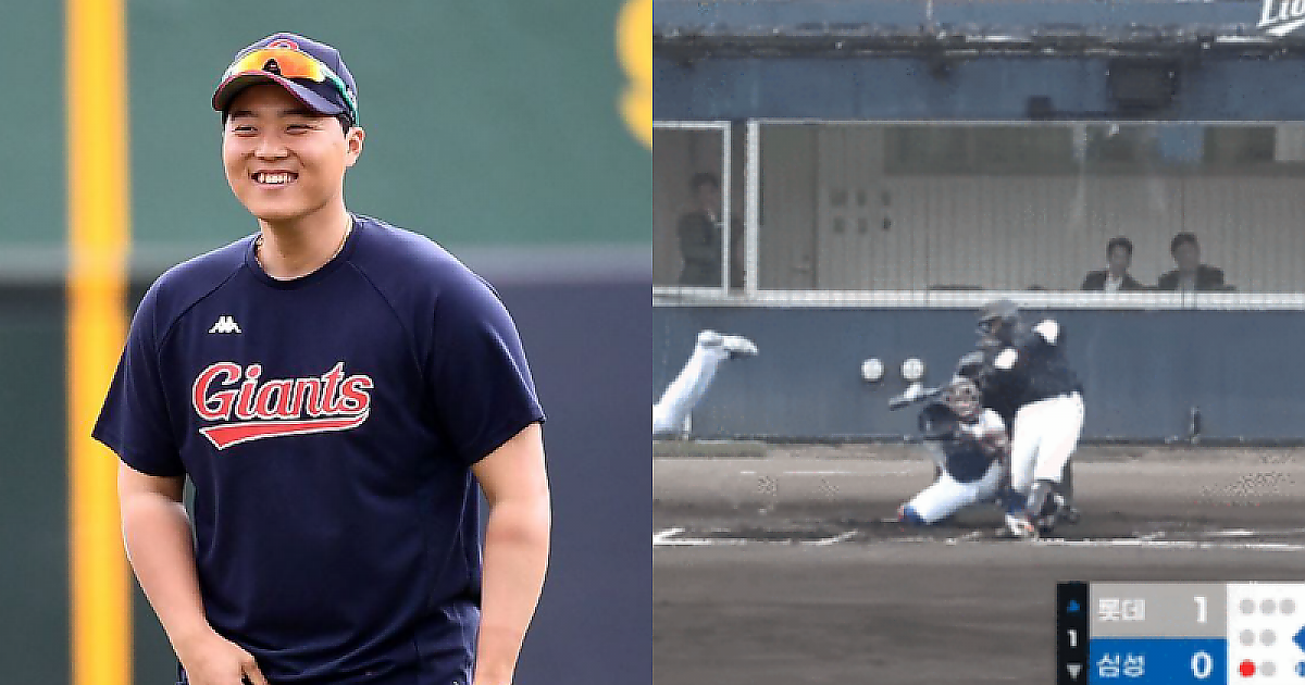 삼성 새 외국인 투수를 상대로 스리런 홈런을 때려내는 한동희ㄷㄷㄷ