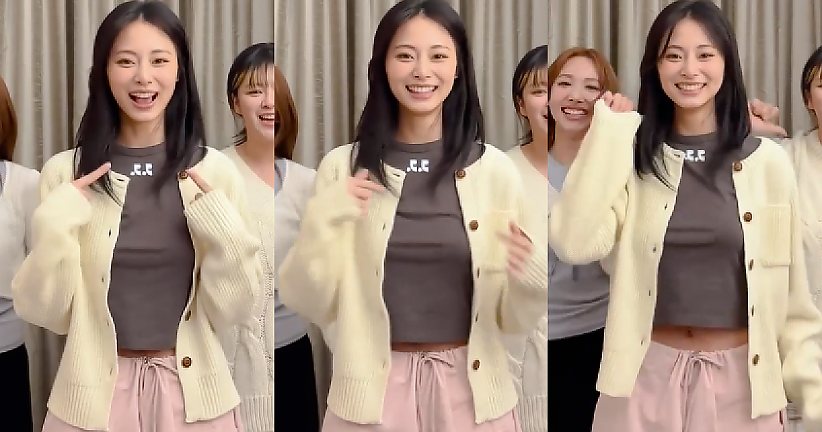 회색 크롭 의상으로 챌린지 중인 아름다운 트와이스 쯔위(영상)