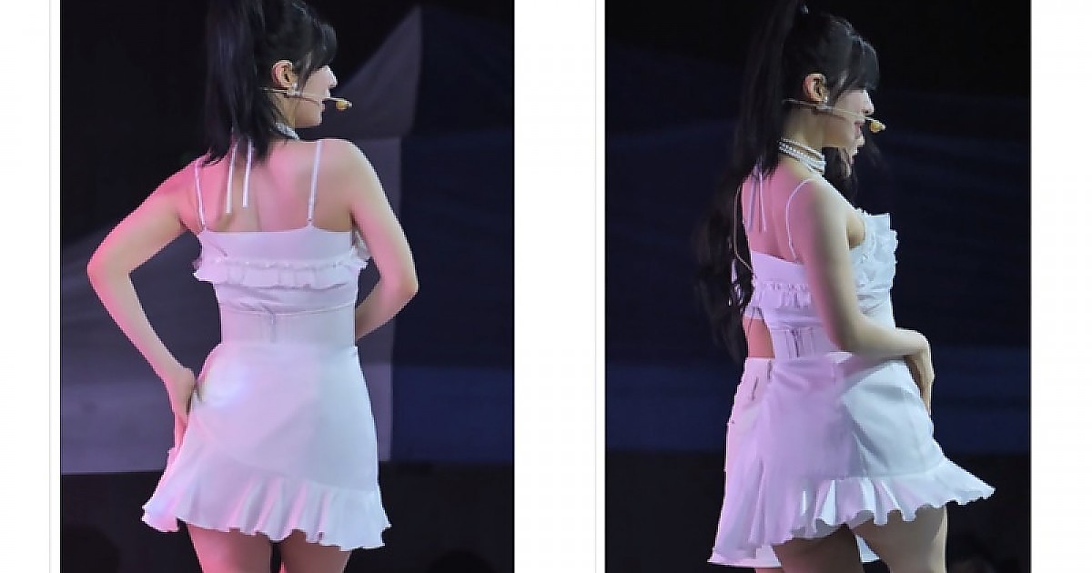 올 화이트 짧은 치마를 입고 무대에서 턴하는 프로미스나인의 '이채영'(영상)