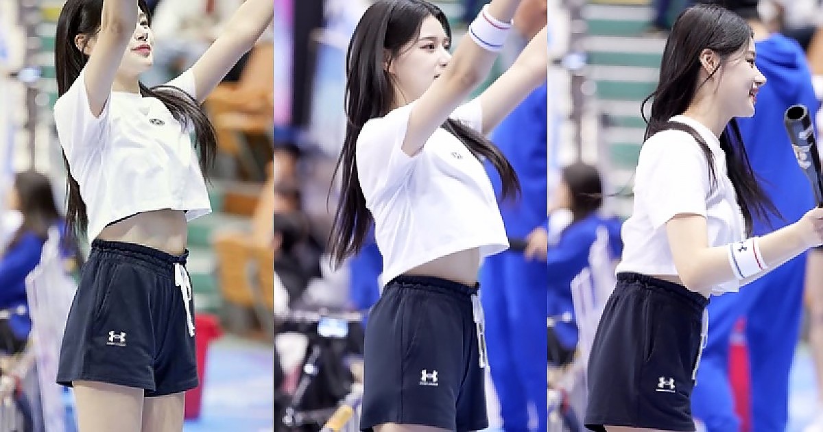 올라간 흰 크롭티 입고 춤추는 이예빈 치어리더(영상)