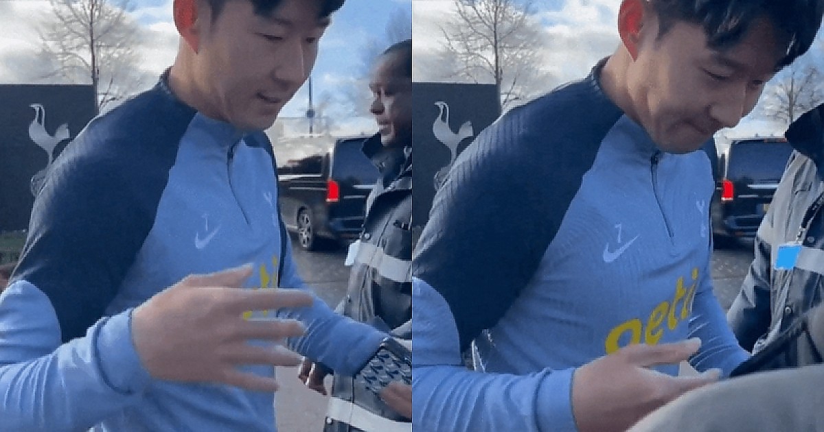 토트넘 훈련 중 팬에게 사인하는 도중 고통을 느낀 모습이 공개됐다.