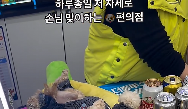 누워서 손님 맞이하는 편의점 직원