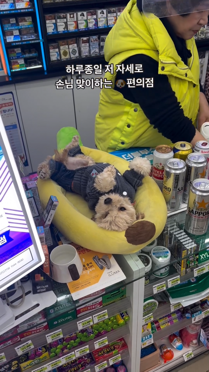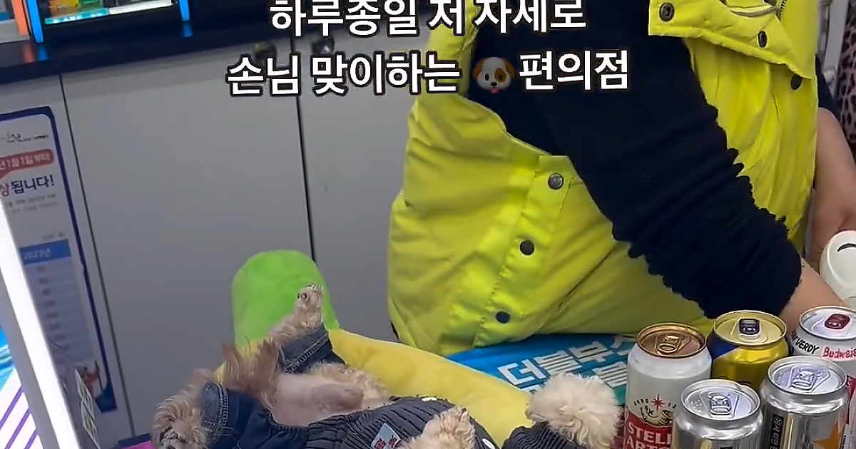 누워서 손님 맞이하는 편의점 직원
