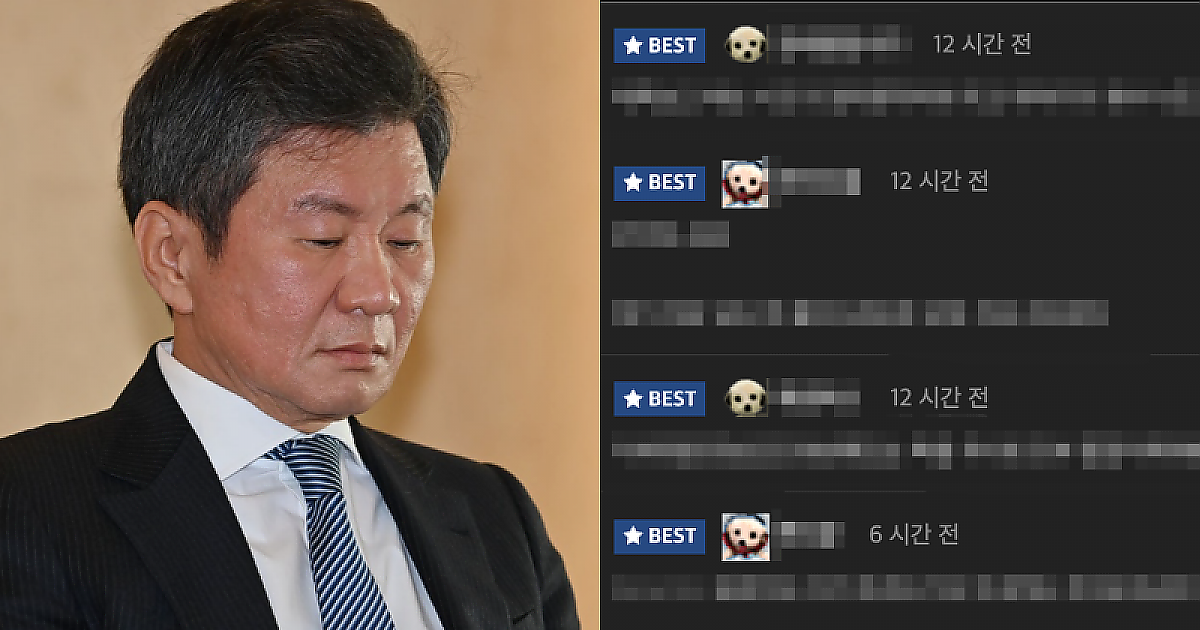 [실시간] 정몽규 축구협회장에 대한 유명 커뮤니티 댓글