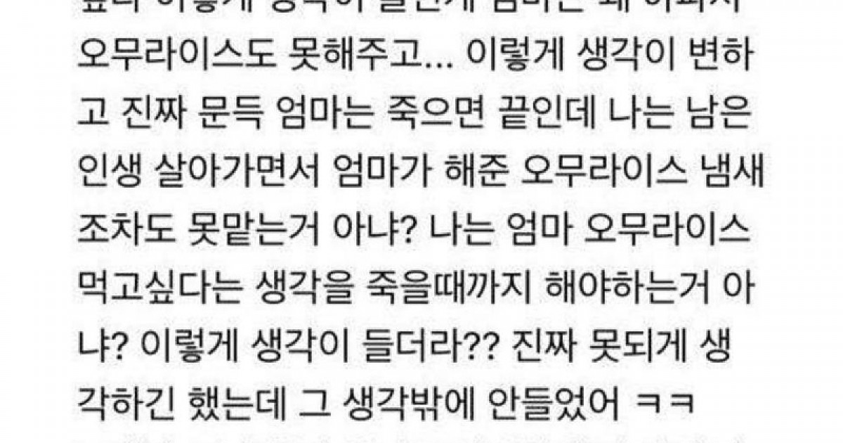 아픈 엄마한테 오무라이스 해달라고 조른 20살 딸