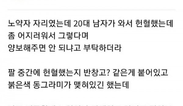버스에서 헌혈했다고 자리 비켜주라고함