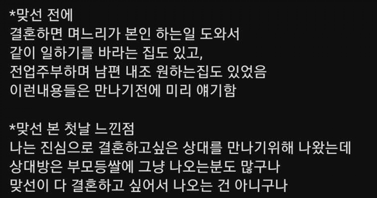 맞선 6개월만에 결혼한 여자가 쓴 장문의 글