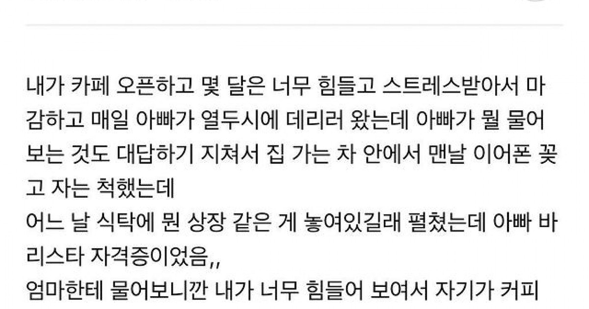 카페 오픈한 딸이 아빠에게 감동한 이유
