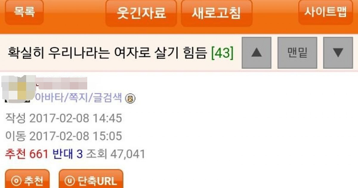 우리나라는 여자로 살기 힘든 나라임