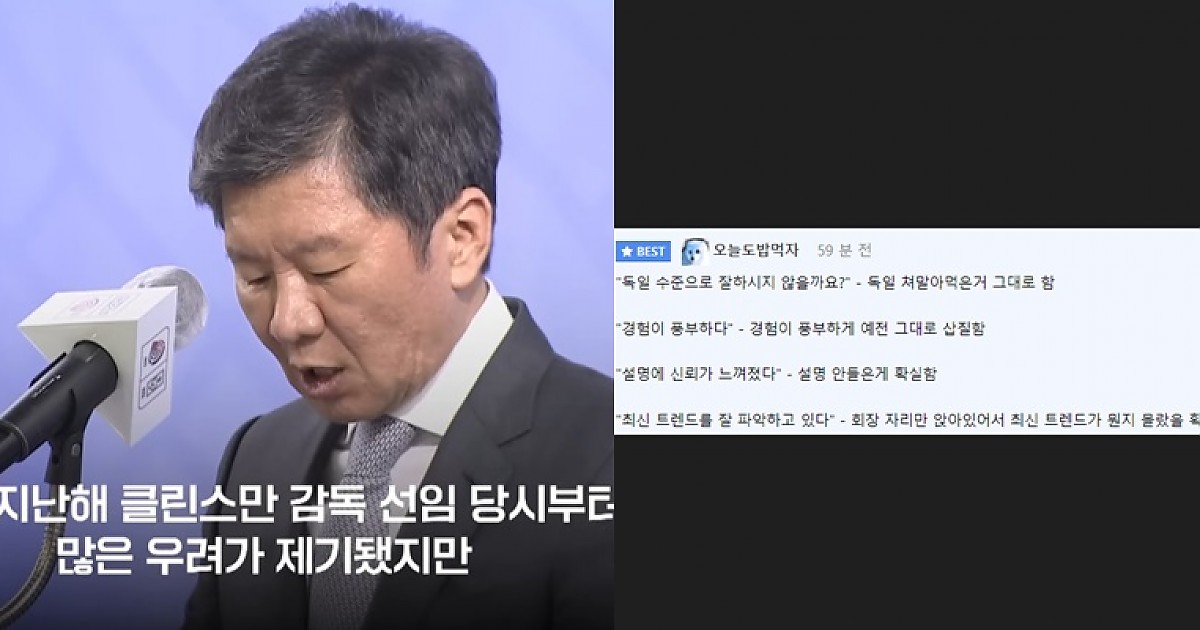클린스만 선임 논란 당시에 "정몽규"가 했다는 말이 ..ㅠㅠ