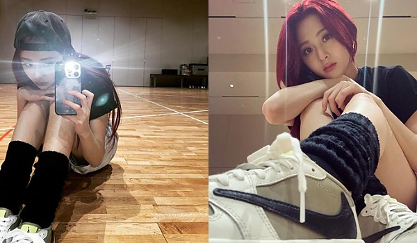 나이키 신발신고 힙찔이 느낌나는 연습실에서 심심했던 르세라핌의 '허윤진'jpg