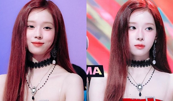 한 쪽만 보이는 오프숄더를 입은 블랙톤이 잘 어울리는 르세라핌의 '김채원'.gif