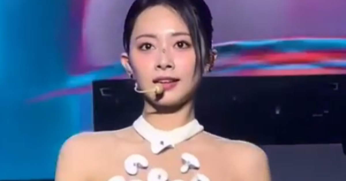 옆트임 화이트 드레스 한쪽 허벅지를 시원하게 드러낸 트와이스 쯔위