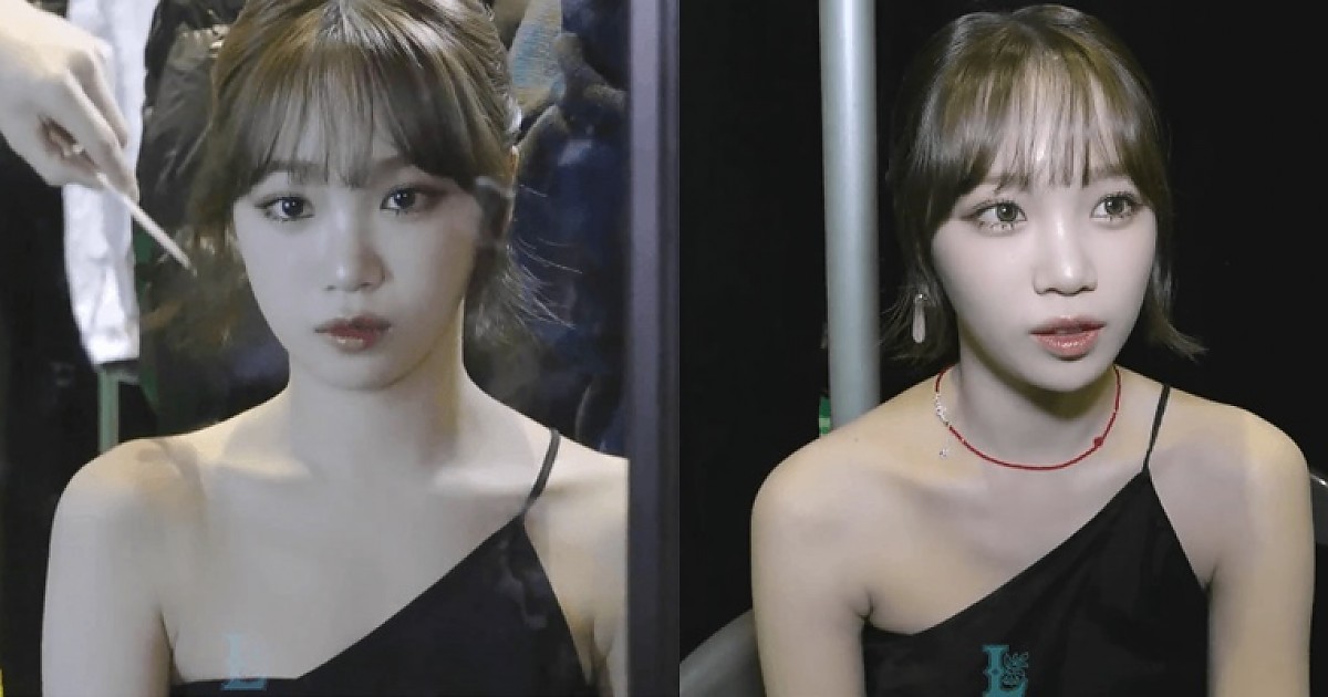 한 쪽만 보이는 오프숄더를 입은 김채원의 색다른 분위기 ㄷㄷ