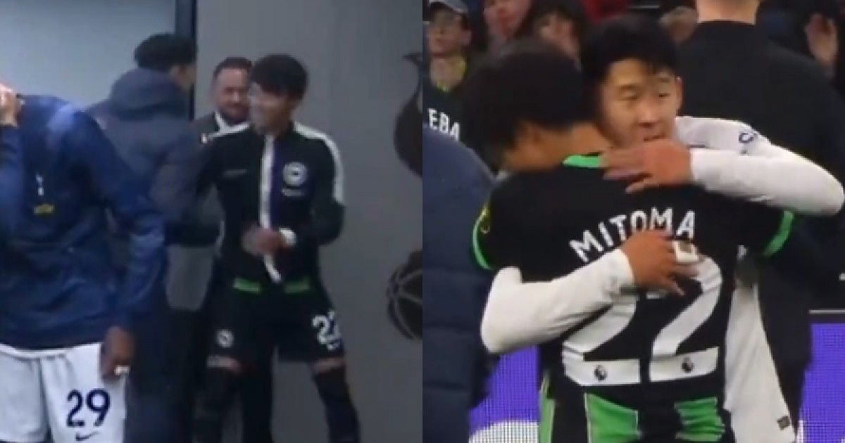 토트넘 vs 브라이튼 경기 전/후로 인사한 손흥민과 미토마 (영상)