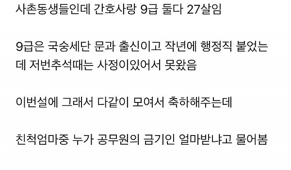 명절에 간호사랑 9급 공무원 시비붙음