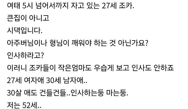 친척이 와도 인사도 하지 않고 자고 있는 조카