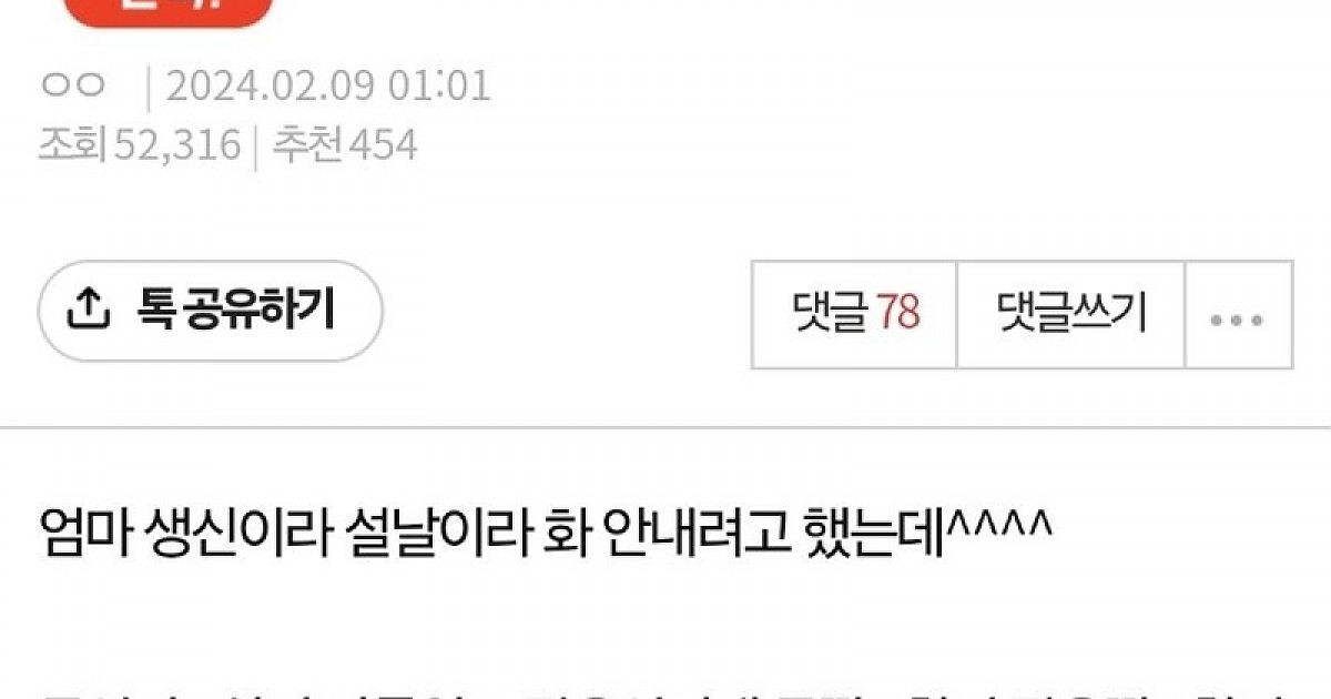 조카 세뱃돈 때문에 열받음