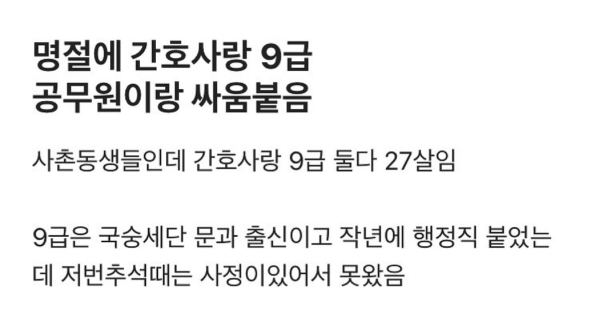 명절에 간호사랑 9급 공무원 시비붙음