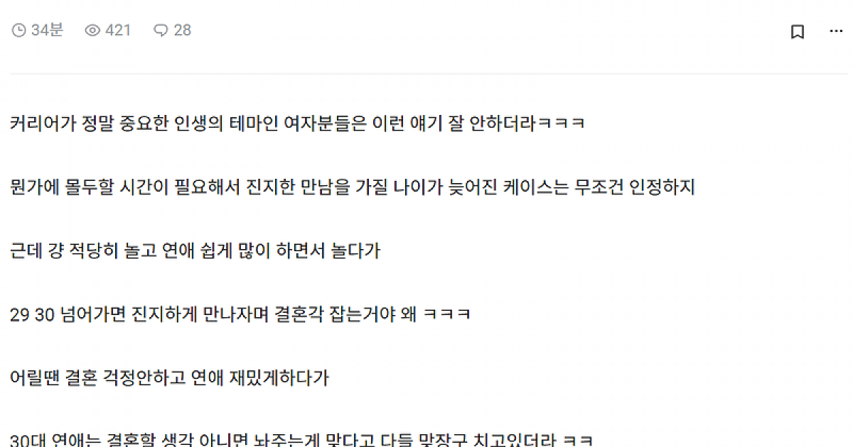 여자들은 왜 30대 되면 진지한 연애하잔 거임