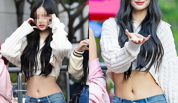 크롭 후드티입고 역대급 허리라인 뽐낸 아이돌 멤버.jpg