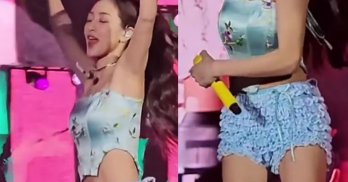 직관 1열에서 바라본 하와이에서 입을만한 치마를 입은 트와이스의 '지효'