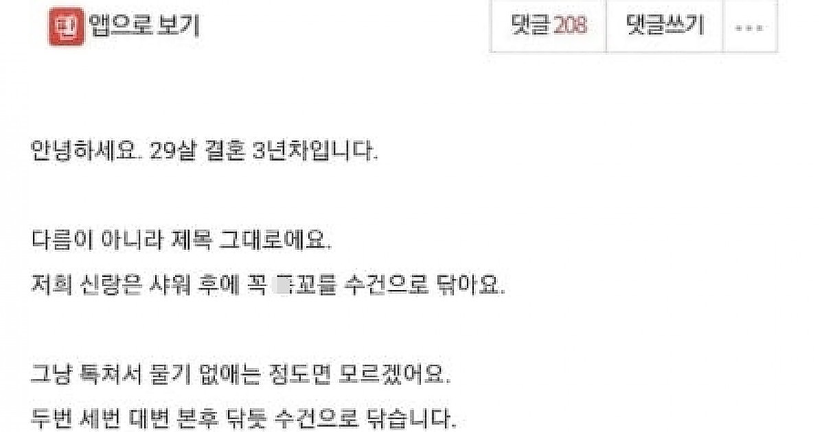 샤워 후 수건으로 X꼬 닦는 남편