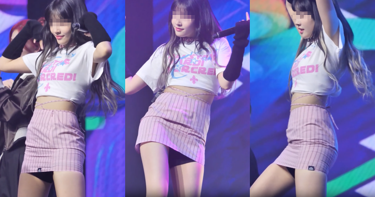 타이트한 줄무늬 치마 의상으로 드러내는 아름다운 몸매 스테이씨 멤버(영상)