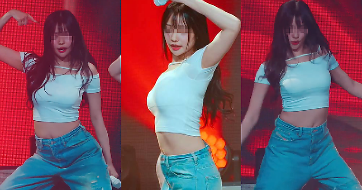꽉끼는 흰티의 청바지 의상으로 드러내는 새하얀 우윳빛 피부와 몸매의 아이돌(영상)