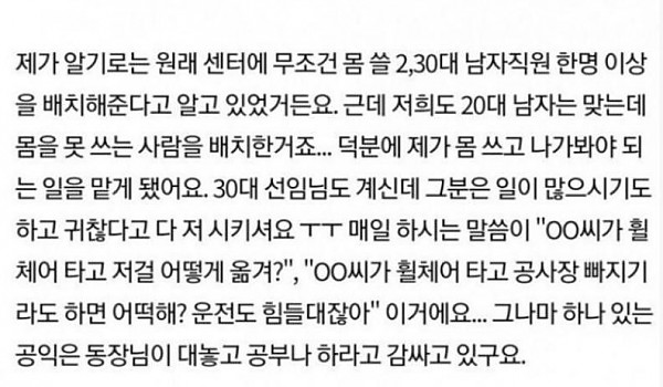 몸 쓸 20,30대 남자직원이 없다는 공무원