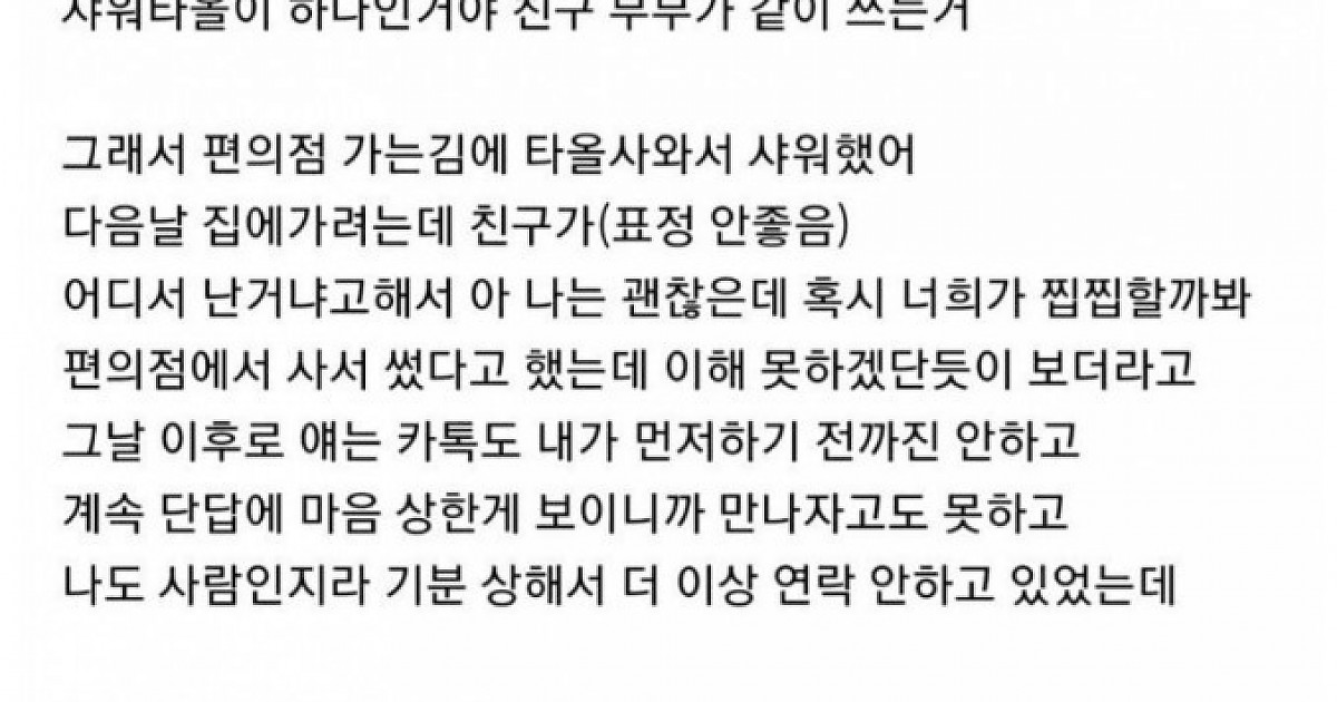 친구 집에서 샤워했다가 손절 당한 언냐