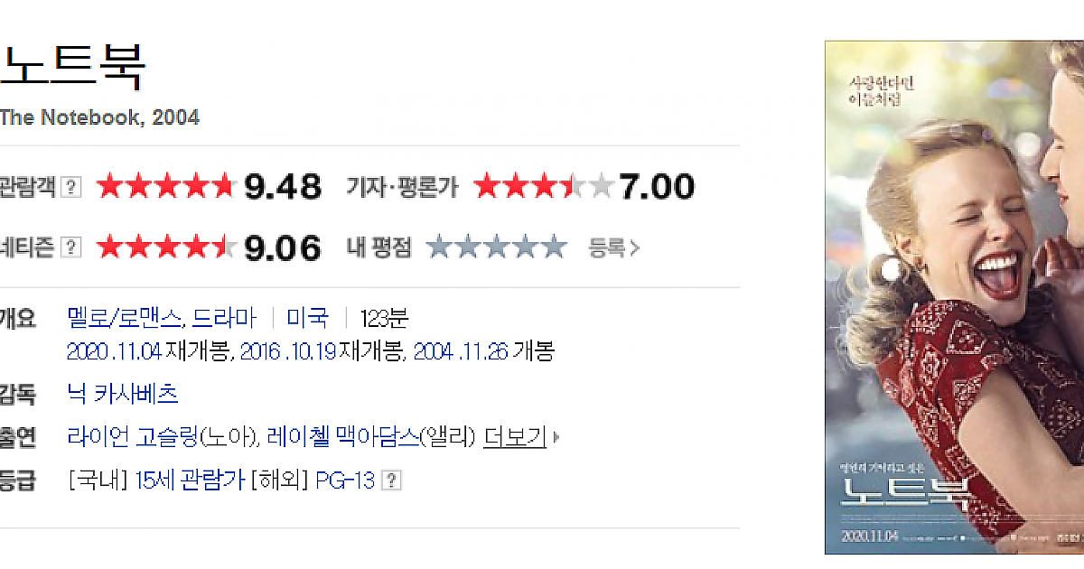 첫 번째 영화 추천은 노트북입니다.