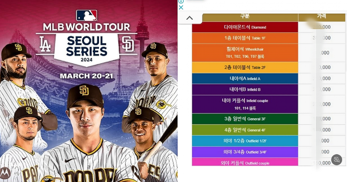 MLB 2024 고척돔 개막전 티켓가격이 떳는데...