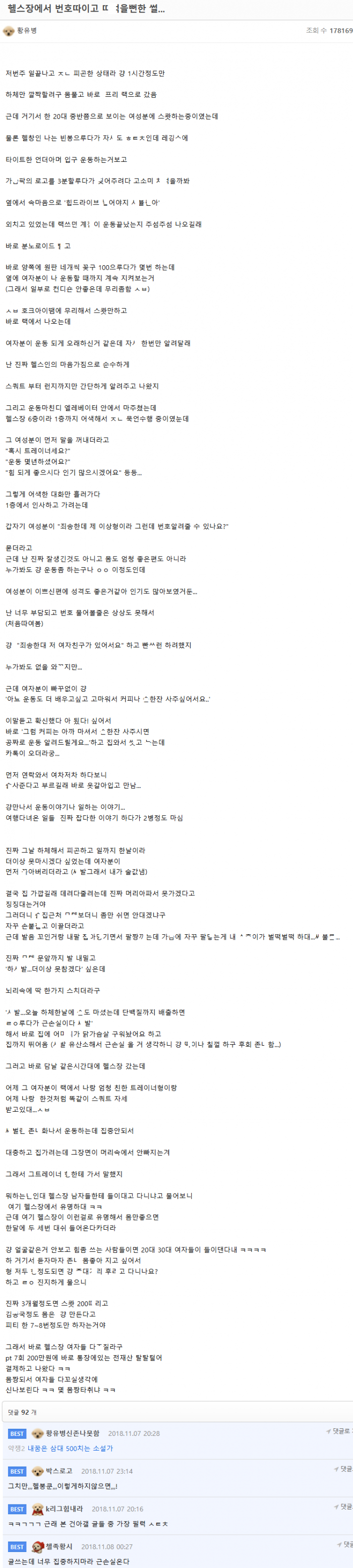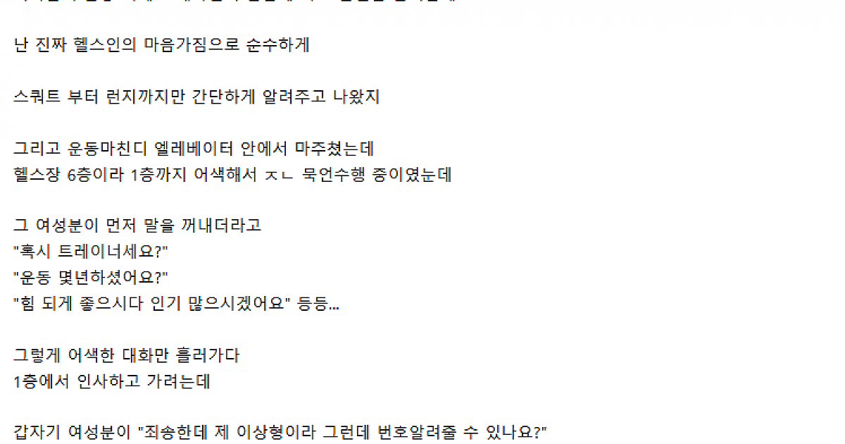 헬스장에서 번호 따이고 여회원 ㄸㅁ을뻔한 썰