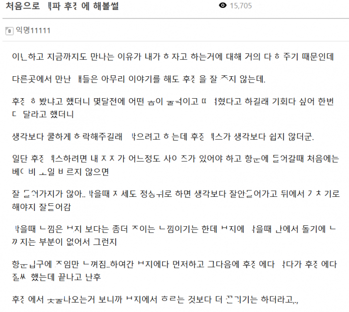 처음으로 ㅅ파 ㅎㅈ에다가 ㅈㅆ
