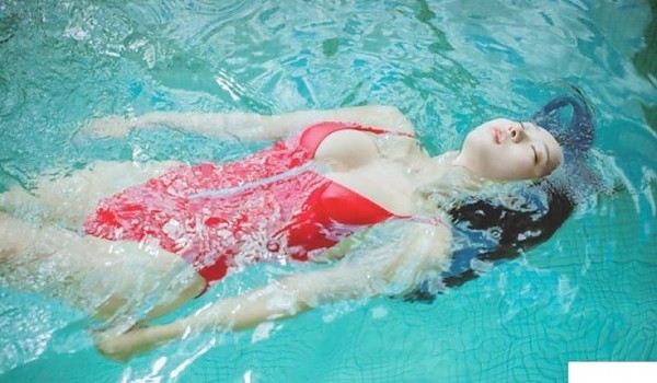 빨간 비키니 핏을 자랑하는...