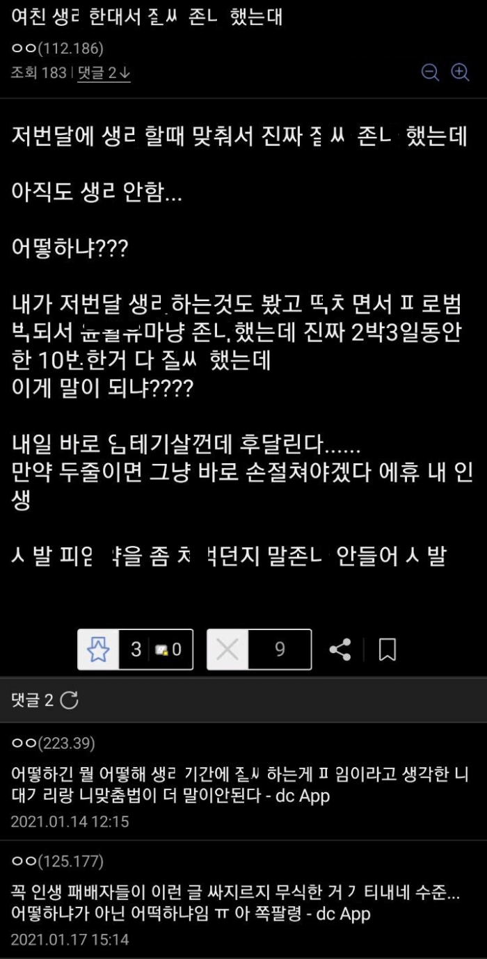 여친 생ㄹ 한대서 ㅈㅆ ㅈㄴ 했는데..