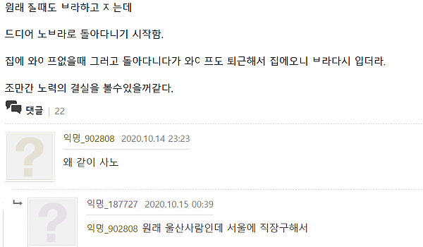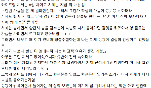 드디어 ㅊ제가 노ㅂ라로 다닌다며 꼭 ㄸ.,rㅁ을거라는 남ㅈ..r