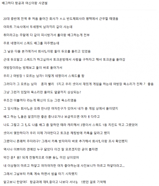 배그 하다가 만난 항공과 여신이랑 사귀고 ㄸ쳤는데 알고보니 변ㅌ였던 여친