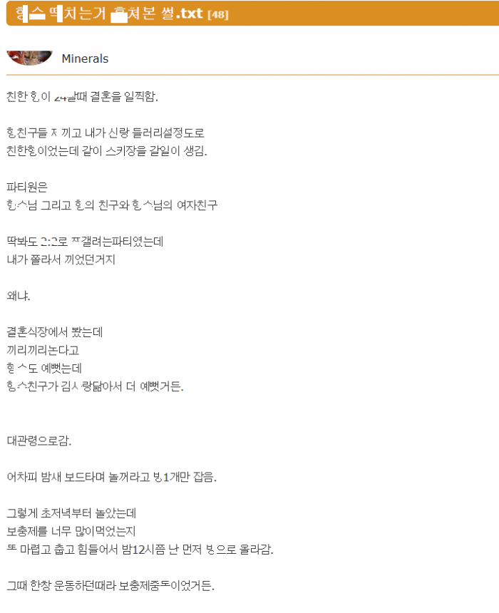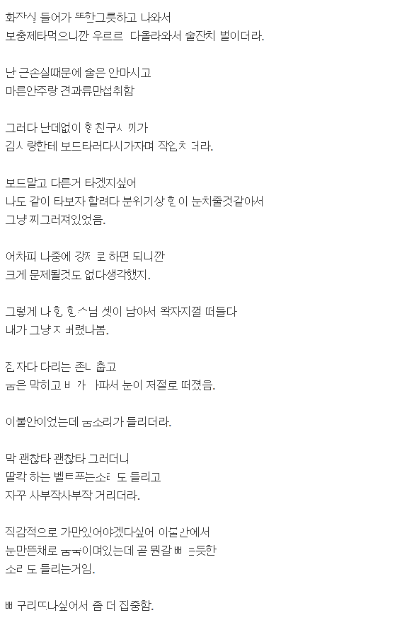 스키장 놀러갔다가 지인이랑 ㅎ수님이 ㄸ치는거 몰ㄹ 훔ㅊ본 썰